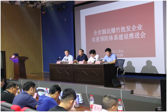 2019年8月7日,全市烟花爆竹批发企业双重预防体系建设推进会在泗水召开。主题是贯彻落实全省烟花爆竹安全监管工作会议精神和《烟花爆竹批发企业安全生产风险管控和隐患排查治理体系实施指南》,进一步推进烟花爆竹批发企业双重预防体系建设工作。